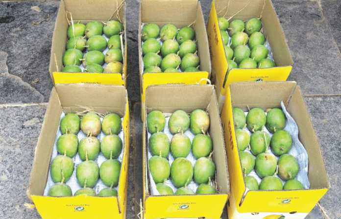 दापोली तालुक्यातील हर्णे येथील सागर मयेकर यांनी गुरुवारी अडीच डझनाचे तीन आणि तीन डझनाचे तीन असे एकूण सहा हापूस आंब्याचे बॉक्स पुणे येथील गुरव बंधू आंबेवाले यांच्याकडे विक्रीसाठी पाठवले. बदलत्या हवामानामुळे आधीच हापूस आंब्याचा हंगाम हा लांबला आहे. मात्र मेहनतीच्या जोरावर सागर मयेकर यांनी त्यावर कौशल्याने मात केली