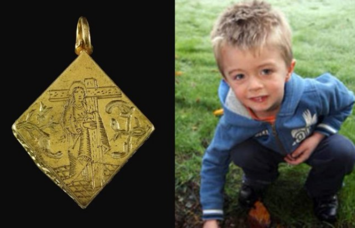 इंग्लंडमधील एका चार वर्षांच्या मुलाला खेळत असताना जमिनीखाली गाडलेला सोन्याचा तुकडा सापडला आहे. या सोन्याच्या तुकडय़ाची किंमत तब्बल 360 दशलक्ष म्हणजेच 36 कोटी रुपये आहे. हा मुलगा त्याच्या वडिलांसोबत बागेत मेटल डिटेक्टर घेऊन खेळत होता. मशीनने बीप करायला सुरुवात केली. त्यानंतर मुलाने माती खणून काढली. त्यावेळी त्याला सोन्याचे तुकडे सापडले. हे सोन्याचे लॉकेट असून ते जवळपास 500 वर्षांहून अधिक जुने आहे. याची सोनाराकडे जाऊन तपासणी केल्यानंतर यात 73 टक्के शुद्ध सोने आढळून आले.