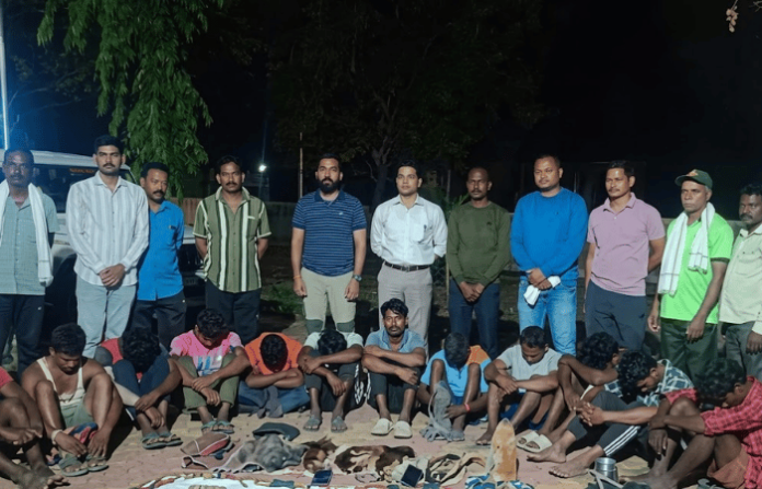 आलापल्ली जंगलात काही जण शिकारीसाठी गेल्याची माहिती गेल्याची माहिती वन विभाग अधिकाऱ्यांनी मिळाली होती. त्यानुसार उपवनसंरक्षक दीपाली तळमले आणि उपविभागीय वन अधिकारी शिवपाल पवार यांच्या मार्गदर्शनाखाली वनपरिक्षेत्र अधिकारी गौरव गणवीर यांच्या गस्ती पथकाने शिकाऱ्यांचा शोध घेतला. यावेळी त्यांना 12 शिकारी दबा धरून बसल्याचे सापडले. वन विभागाने त्यांना ताब्यात घेऊन त्यांची झडती घेतली असता त्यांच्याकडून चार शेकरू, खार, हरीनाल पक्षी आणि घुबडांच्या काही प्रजातींसह इतर वन्यजीवांचे अवशेष आणि शिकारीसाठी वापरण्यात येणारे साहित्य मिळाले. या बाराही जणांवर कठोर कारवाई करण्यात येणार असल्याची माहिती वन विभागाने दिली.