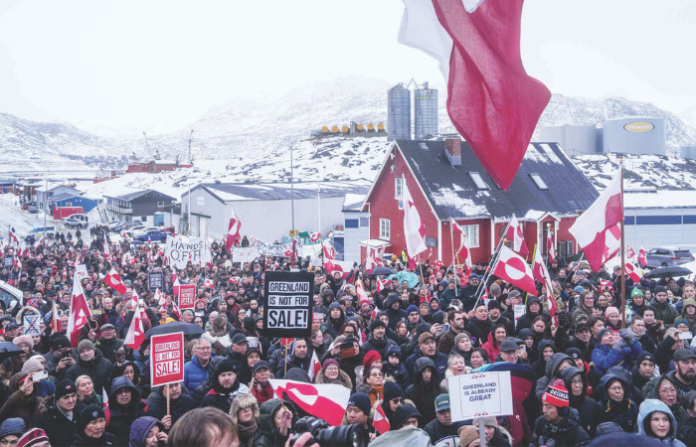 डोनाल्ड ट्रम्प यांनी संपूर्ण ग्रीनलँडला विकत घेण्यासाठी प्रस्ताव दिला होता. त्यास ग्रीनलँडच्या नागरिकांनी तीव्र विरोध केला आहे. बहुतांश बर्फाच्छादित प्रदेश असलेल्या ग्रीनलँडमध्ये यामुळे वातावरण प्रचंड तापले आहे. ट्रम्प यांच्या विरोधात संतप्त झालेले ग्रीनलँडचे नागरिक रस्त्यावर उतरले आहेत. ग्रीनलँडची राजधानी असलेल्या नुउक या शहरात हजारो नागरिकांनी राष्ट्रध्वज आणि फलक हातात घेऊन ट्रम्पविरोधी नारे दिले. ‘ग्रीनलँड विक्रीसाठी नाही’, ‘आम्ही अमेरिकन नाही आणि कधी होणारही नाही’ असे नारे नागरिकांनी दिले. काही जणांनी ट्रम्प यांचे पुतळे खांद्यावर घेऊन निदर्शने केली. पोलिसांच्या माहितीनुसार, नुउक शहरातील सुमारे एक चतुर्थांश लोकसंख्या या निदर्शनांमध्ये सहभागी झाली होती. निदर्शनांच्या पार्श्वभूमीवर ग्रीनलँडमधील अमेरिकन दूतावासाची सुरक्षा वाढवण्यात आली होती.