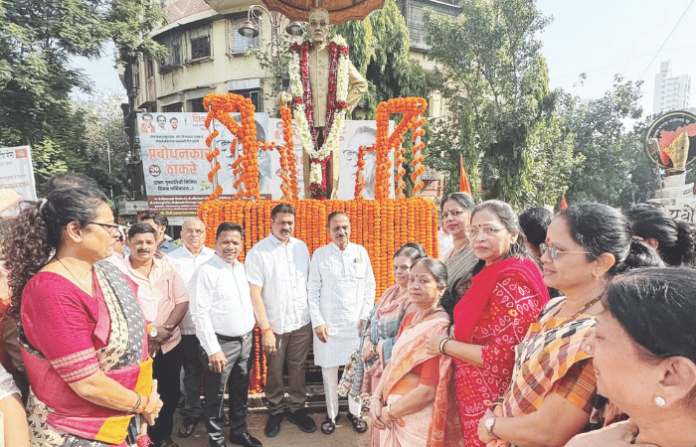 थोर समाजसुधारक, साहित्यिक व संयुक्त महाराष्ट्र लढय़ातील अग्रणी, झुंजार पत्रकार केशव सीताराम ठाकरे तथा प्रबोधनकार ठाकरे यांच्या पुण्यतिथीनिमित्त गुरुवारी दादर येथील त्यांच्या पूर्णाकृती पुतळ्यास अभिवादन करण्यात आले. या वेळी शिवसेना नेते दिवाकर रावते, विभागप्रमुख – आमदार महेश सावंत, उपनेते मिलिंद वैद्य, उपनेत्या विशाखा राऊत, शिवसेना सचिव साईनाथ दुर्गे, विभागसंघटक श्रद्धा जाधव, माहीम विधानसभा निरीक्षक यशवंत विचले, माजी उपमहापौर हेमांगी वरळीकर, चंद्रकांत झगडे, जितेंद्र सकपाळ आदी उपस्थित होते.
