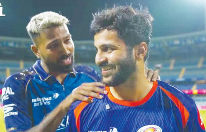 काल मुंबईच्या 13 वर्षांच्या पराभवाचा दुष्काळ संपवणाऱ्या शार्दुलच्या गोलंदाजीचे हार्दिकने मनापासून कौतुक केले. कोलकाताविरुद्धच्या सामन्यात 444 धावांचा पाऊस पडत असताना शार्दुलने 39 धावांत 3 विकेट घेत भेदक गोलंदाजी केली. मुंबई इंडियन्ससाठीच नेट बॉलर म्हणून सुरू झालेला त्याचा प्रवास आज ‘मॅच विनर’ बनून पूर्ण झाला. आज मुंबई इंडियन्ससाठी पदार्पण करताना ठाकूरच्या गोलंदाजीच्या शोलेंनी कोलकात्याला होरपळून टाकले.