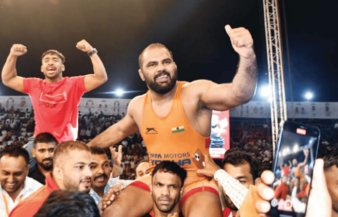 कुस्तीप्रेमींचा उसळलेला जनसागर… एकाच तालमीतील दोन जीवाभावाच्या दोस्तांमध्येच रंगलेली लढत… एकाच गुरूचे दोन चेले असल्यामुळे निश्चिंत बसलेले वस्ताद… अशा फारसा खुन्नस का मामला नसलेल्या किताबी लढतीत नाशिकच्या हर्षवर्धन सदगीरने सोलापूरच्या महेंद्र गायकवाडला 4-3 गुणफरकाने पराभूत करत 68व्या ‘महाराष्ट्र केसरी’ किताबाची मानाची चांदीची गदा जिंकली. आता तो यापुढे ‘डबल महाराष्ट्र केसरी’ म्हणून मिरवणार आहे. कारण हर्षवर्धनने याआधी 2019 साली पुण्यात ‘महाराष्ट्र केसरी’ची गदा उंचावली होती. आता ‘डबल महाराष्ट्र केसरी’ होताच हर्षवर्धनच्या पाठीराख्यांनी एकच जल्लोष केला. त्याला मानाची चांदीची गदा, फॉर्च्युनर गाडी व रोख पाच लाख रुपयांचे बक्षीस देऊन गौरविण्यात आले. दुसऱयांदा ‘उपमहाराष्ट्र केसरी’ किताबावर समाधान मानावे लागलेल्या महेंद्र गायकवाडला स्कॉर्पिओs गाडी व रोख चार लाख रुपये देऊन सन्मानित करण्यात आले.