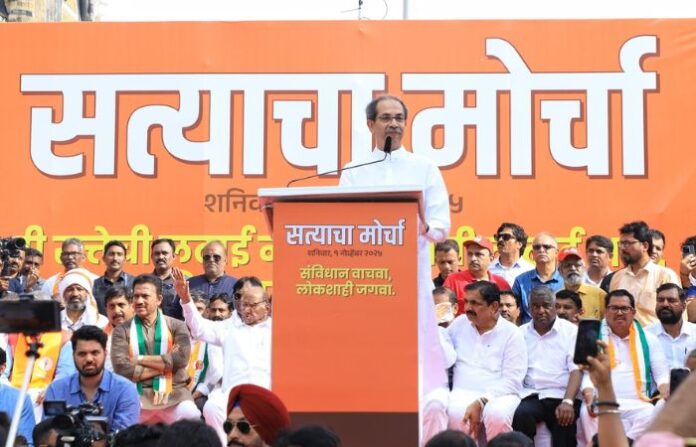 जमलेल्या तमाम जागरूक, देशभक्त व खऱया मतदार बांधवांनो, भगिनींनो आणि मातांनो… अशी दणदणीत सुरुवात उद्धव ठाकरे यांनी केली. संयुक्त महाराष्ट्राच्या लढय़ानंतर आज प्रथमच राजकीय पक्षांची एकजूट या मोर्चाद्वारे झाली असेल. ही नुसती विरोधी पक्षांची एकजूट नाही, तर लोकशाहीचे प्रतिनिधित्व आणि नेतृत्व करणाऱया राजकीय पक्षांची एकजूट आहे, असे उद्धव ठाकरे म्हणाले.