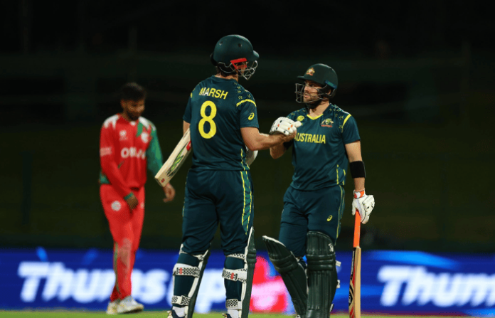 साखळीतच बाद झालेल्या ऑस्ट्रेलियाने ओमानचे 105 धावांचे आव्हान अवघ्या 9.4 षटकांत एका फलंदाजाच्या मोबदल्यातच गाठत टी-20 वर्ल्ड कपचा आपला प्रवास मोठय़ा विजयासह संपवला. अॅडम झम्पाने 4 तर झेव्हियर बार्लेट, ग्लेन मॅक्सवेल यांनी प्रत्येकी 2 विकेट घेत ओमानचा डाव 104 धावांत संपवला तर हे लक्ष्य त्यांनी कर्णधार मिशेल मार्शच्या 4 षटकार आणि 7 चौकारांसह साकारलेल्या 64 धावांच्या खेळीसह गाठले. त्याने ट्रॅव्हिस हेडसह 81 धावांची सलामीही दिली.