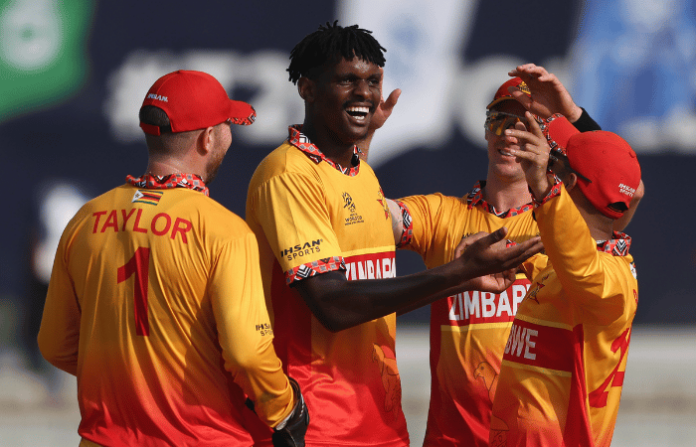 गोलंदाजांच्या अचूक कामगिरीनंतर ब्रायन बेनेटच्या नाबाद 48 धावांच्या जोरावर झिम्बाब्वेने टी-20 क्रिकेट वर्ल्ड कपमध्ये ओमानवर 8 फलंदाज आणि 39 चेंडू राखून दणदणीत विजय मिळविला. या विजयासह झिम्बाब्वेने ‘ब’ गटातून अव्वल स्थानी झेप घेतली. ओमानची आघाडीची फळी कापून काढणारा ब्लेसिंग मुजरबानी या सामन्याचा मानकरी ठरला.