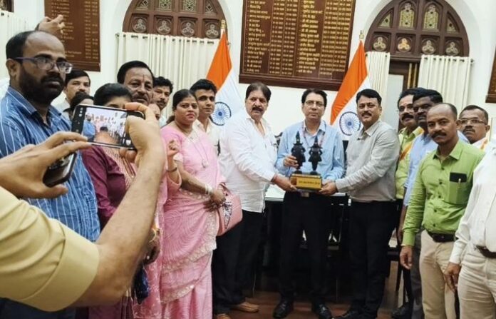 शिवसेना नेते आणि रेल कामगार सेना अध्यक्ष विनायक राऊत यांच्या मार्गदर्शनानुसार रेल कामगार सेनेचे कार्याध्यक्ष संजय जोशी, सरचिटणीस दिवाकर देव यांच्या नेतृत्वाखाली शिष्टमंडळाने मध्य रेल्वेचे महाव्यवस्थापक विजय कुमार यांना शाल व पुष्पगुच्छ देऊन त्यांचे स्वागत केले. त्यांना वारकऱ्यांचे आणि महाराष्ट्राचे श्रद्धास्थान असलेल्या विठ्ठल-रखुमाईची विलोभनीय मूर्ती भेट देण्यात आली. यावेळी मराठी राजभाषा विभाग स्थापनेच्या मुद्द्यावर विविध विषयांवर चर्चा करण्यात आली. शिवसेना नेते-खासदार अनिल देसाई आणि विनायक राऊत यांनी मध्य रेल्वेमध्ये मराठी राजभाषा विभाग स्थापन करण्याबाबत रेल्वे प्रशासनाला यापूर्वी पत्र दिले आहे. त्यानुसार तातडीने कार्यवाही करण्याची मागणी रेल कामगार सेनेतर्फे करण्यात आली. तसेच लैसिक ऑपरेशन, रनिंग स्टाफवरील अन्याय, रनिंग स्टाफवर कॅमेयाद्वारे पाळत ठेवणे, स्पॅड केसेस-शिक्षेला विरोध, इंजिनीअरिंग विभागातील 10 टक्के आणि 40 टक्के कोटा रिलीज करणे, टीएमडब्ल्यू वर्कशॉपसाठी स्वतंत्र सीडब्ल्यूएम आदी विषय चर्चेत घेण्यात आले. यावेळी महिला आघाडी सरचिटणीस सोनाक्षी मोरे, मंजुषा माटे, सुषमा गुजर, कोमल माळवे, नरेश बुरघाटे, ललित मुथा, प्रशांत कमानकर, तुकाराम कोरडे, नीलेश कदम, संतोष देवळेकर, सी.आर.राजन, राजेश भगत, सुनील लाड, राजेश कोकाटे, रवी सावंत, कृष्णा रंशूर, दत्ता राव, तिरुमलेश अंबाला, स्वप्नील मयेकर, नीलेश मोरे, लजेश कोरगावकर, अनिरुद्ध, अभिजित भोसले आदी उपस्थित होते.
