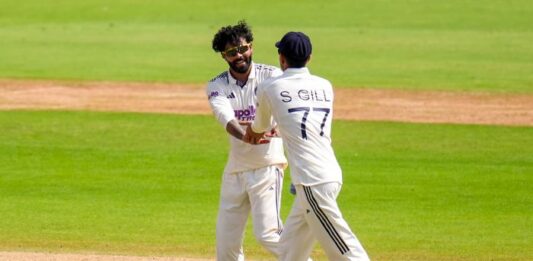 अहमदाबाद कसोटीत शुभमन गिलच्या नेतृत्वात खेळणाऱ्या हिंदुस्थानने पाहुण्या वेस्ट इंडिजचा डावाने पराभव केला आहे. नरेंद्र मोदी मैदानात झालेली लढत अवघ्या अडीच दिवसांमध्ये आटोपली. रवींद्र जडेजा आणि मोहम्मद सिराजच्या भेदक गोलंदाजीच्या बळावर हिंदुस्थानने विंडीजचा दुसरा डाव 146 धावांमध्ये गुंडाळत एक डाव आणि 140 धावांनी मोठा विजय मिळवला. पहिल्या डावात शतकी खेळी करत गोलंदाजी चार बळी घेणाऱ्या … Continue reading IND vs WI Test – शतकानंतर जडेजाचा गोलंदाजीत ‘चौकार’, अहमदाबाद कसोटीत हिंदुस्थानचा डावानं विजय