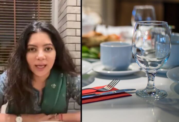 त्यांनी सांगितले की त्या मांडी घालून बसल्या होत्या आणि अचानक मॅनेजरने त्यांच्या बसण्याच्या पद्धतीवर नाराजी व्यक्त केली. मॅनेजरने त्यांना “योग्य रीतीने बसा” असे सांगितले कारण इतर पाहुण्यांना त्यांच्या या बसण्याच्या पद्धतीमुळे अवघडल्या सारखे होत असल्याचे सांगितले गेले.