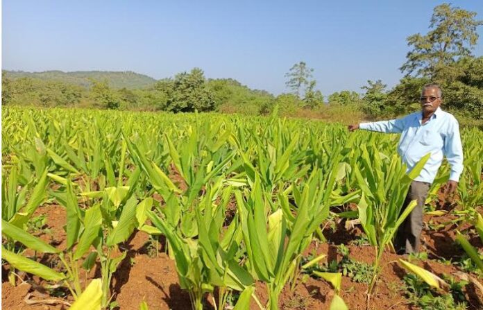 निसर्गाचा असमतोलपणा आणि खर्चिक होत चाललेल्या पारंपारिक शेती पिकांना फाटा देत हातीप येथील हितेश प्रकाश जांभळे या सेवानिवृत्त सैनिकांने आपल्या वयोवृध्द वडिलांच्या साथीने हळद लागवड करण्याचा निर्णय घेतला. त्यासाठी त्यांनी भाडे तत्वावर जमीन घेतली या जमिनीवर जिद्द मेहनत चिकाटीच्या जोरावर कष्ट उपसत त्यांनी मोठ्या प्रमाणात हळद लागवड केली आहे.
