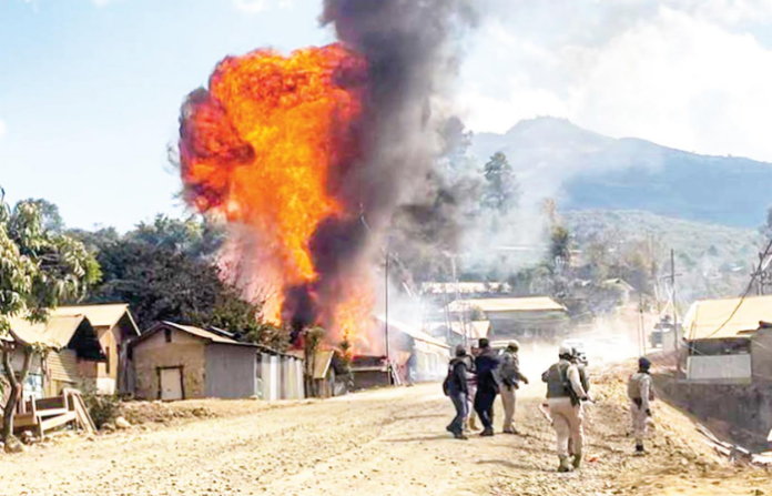 नव्या मुख्यमंत्र्यांनी सूत्रे हाती घेतल्यानंतरही मणिपूरमध्ये हिंसाचार सुरूच असून नागा बहुल उखरूल जिह्यात मंगळवारी पहाटे आगडोंब उसळला. काही समाजपंटकांनी एका गावात धुडगूस घालत 25 ते 30 घरांना आगी लावल्या. तसेच हवेत अंदाधुंद गोळीबार केला. खबरदारी म्हणून सरकारने जिह्यात संचारबंदी लागू केली असून इंटरनेट सेवा पाच दिवसांसाठी बंद ठेवण्यात आली आहे.