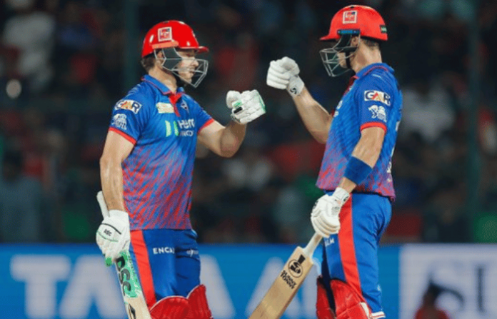 बंगळुरूकडून मिळालेले १७६ धावांचे लक्ष्य दिल्लीने १९.५ घटकांत ४ बाद १७९ घावा करीत पूर्ण केले. खरं तर लक्ष्याचा पाठलाग करताना दिल्लीचीही सुरुवात निराशाजनकच झाली होती. अनुभवी वेगवान गोलंदाज भुवनेश्वर कुमारने पथुम निस्संका (१), करुण नायर (५) व समीर रिझवी (२) ही आघाडीची फळी कापून काढत दिल्लीची २.५ षटकांत ३ बाद १८ अशी दुर्दशा केली. त्याने निस्संकास पायचित पकडले, तर नायरला सॉल्टकरवी झेलबाद केले. मग रिझवीला यष्टीमागे जितेश शर्माकरवी झेलबाद केले.