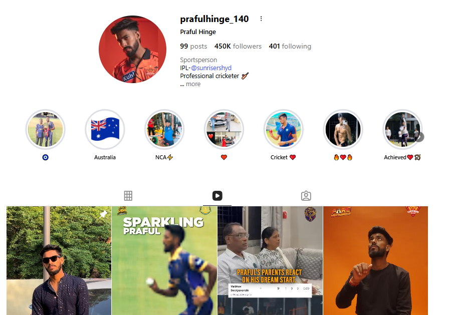 प्रफुलच्या या धडाकेबाज कामगिरीमुळे तो रातोरात इंटरनेट सेन्सेशन बनला आहे. सामन्यापूर्वी प्रफुलच्या इंस्टाग्राम अकाउंटवर केवळ 1 हजारच्या आसपास फॉलोअर्स होते. मात्र, सोमवारी (13 एप्रिल 2026) त्याने मैदानात केलेल्या कामगिरीनंतर अवघ्या 24 तासांत त्याच्या फॉलोअर्सची संख्या 4 लाखांच्या वर पोहोचली आहे. समालोचक नवजोत सिंह सिद्धू यांनीही त्याच्या या वाढत्या लोकप्रियतेची दखल घेत ही माहिती चाहत्यांना दिली.