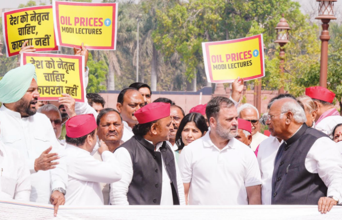 n लोकसभेतील विरोधी पक्षनेते राहुल गांधी व राज्यसभेतील विरोधी पक्षनेते मल्लिकार्जुन खरगे यांच्या उपस्थितीत इंडिया आघाडीतील सर्व पक्षांच्या नेत्यांची बैठक झाली. यावेळी इराण युद्धासह विविध महत्त्वाच्या मुद्यांवर चर्चा झाली. शिवसेना नेते खासदार संजय राऊत, राष्ट्रवादी काँग्रेसच्या खासदार सुप्रिया सुळे यांच्यासह अनेक नेते उपस्थित होते.
