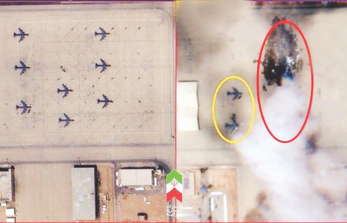 - या तळाची हल्ल्यापूर्वीची आणि नंतरची उपग्रहातून काढलेली छायाचित्रे इराणने शेअर केली आहेत. त्यात अमेरिकेच्या विमानांचे झालेले नुकसान स्पष्टपणे दिसून येते.