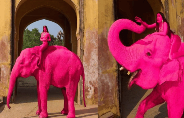 राजस्थानची राजधानी जयपूरमध्ये एका रशियन छायाचित्रकाराने फोटोशूटसाठी एका वृद्ध हत्तीला भडक गुलाबी रंगाने रंगवल्याचा प्रकार समोर आल्याने वाद निर्माण झाला होता. डिसेंबर 2025 मध्ये जूलिया बुरुलेवा या रशियन आर्टिस्टने हे फोटो सोशल मीडियावर शेअर केले होते, जे आता मोठ्या प्रमाणावर व्हायरल झाले आहेत. या फोटोशूटमध्ये ‘चंचल’ नावाच्या 65 वर्षीय हत्तीणीला एका बाजूने गुलाबी रंगाने माखलेले दाखवण्यात आले आहे. या कृतीवर नेटीझन्सनी तीव्र संताप व्यक्त केला असून, प्राण्यांच्या अशा प्रकारे होणाऱ्या व्यापारी वापराच्या नैतिकतेवर प्रश्नचिन्ह उपस्थित केले आहे.