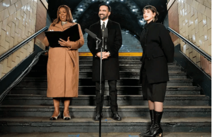 हिंदुस्थानी वंशाचे डेमोक्रॅट नेते जोहरान ममदानी यांनी न्यूयॉर्क सिटीच्या महापौरपदाची शपथ घेतली. मॅनहॅटन येथील ऐतिहासिक सिटी हॉल सबवे स्टेशन मध्ये आयोजित शपथविधीत ममदानी यांनी कुराणावर हात ठेवून शपथ घेतली. अमेरिकेतील सर्वात मोठ्या शहराचे पहिले मुस्लिम महापौर ठरले आहेत. शपथविधीत ममदानी यांना न्यूयॉर्कच्या अॅटर्नी जनरल आणि राजकीय सहकारी लेटिशिया जेम्स यांनी शपथ दिली. शपथ घेतल्यानंतर ममदानी म्हणाले, “हा माझ्या आयुष्यातील सर्वात मोठा सन्मान आणि सौभाग्याचा क्षण आहे.”