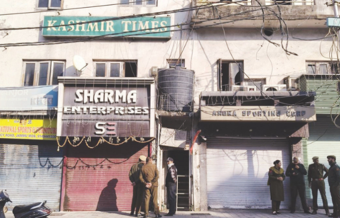 जम्मू-कश्मीर पोलिसांच्या ‘स्टेट इन्व्हेस्टिगेशन युनिट’ने काश्मीर टाइम्सच्या कार्यालयावर आज धाड टाकली. त्यात एके-47 रायफलची काडतुसे हँडग्रेनेडच्या पिना आणि पिस्तुलचे काही राऊंडस जप्त करण्यात आले. देशविरोधी कारवायांना मदत केल्याच्या आरोपांनंतर ही कारवाई झाली.