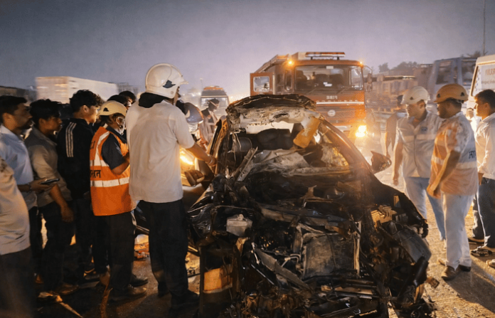पहाटे 4 च्या सुमारास नायरा पेट्रोल पंपाजवळ, मुंबईकडून नाशिककडे जाणाऱ्या मार्गावर कारचालक दीपक पाटेकर (26) यांचे नियंत्रण सुटले आणि कार रस्त्यावर उभ्या असलेल्या ट्रेलरला जोरात मागून धडकली. या धडकेत चालक पाटेकर कारमध्ये अडकून पडला होता. ठाणे महापालिका अग्निशमन दल व आपत्ती व्यवस्थापन पथकाने त्याला बाहेर काढून कळवा येथील छत्रपती शिवाजी महाराज रुग्णालयात दाखल केले; मात्र डोक्याला गंभीर दुखापत झाल्याने डॉक्टरांनी त्याला मृत घोषित केले.