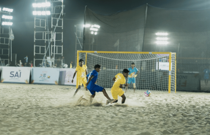 दीवमधील घोघला समुद्र किनाऱ्यावर रंगलेल्या बीच सॉकर मैदानात महाराष्ट्राच्या मुलांनी सलग दुसऱ्या विजयाची नोंद केली. अंदमान आणि निकोबारवर संघावर १४-५ गोलने दणदणीत विजय संपादन पदकासह उपांत्य फेरीतील प्रवेश निश्चित केला. कवीश दवणेसह सागर सिंगने तुफानी ३ गोल नोंदवून मैदान गाजवले. सिध्दार्थ कांबळे, साहिल डोंगरे, धवल तामोरे यांनी प्रत्येकी २ गोल तर मानस तामोरे, प्रतिक वापीलकर यांनी प्रत्येकी १ गोल करून महाराष्ट्राला दणदणीत विजय मिळवून दिला.