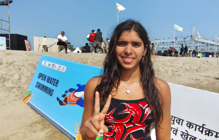 दीवमधील अरबी समुद्रात सकाळच्या सत्रात १० कि.मी. सागरी जलतरणाचा थरार रंगला. महिलांच्या गटात सुरूवातीपासून महाराष्ट्राच्या २० वर्षीय दिक्षा यादवे मुसंडी मारली होती. दुसऱ्या फेरीत ती मागे पडली. अखेरच्या टप्प्यात २.४८.०४ वेळ नोंदवून तीने कांस्य पदकाचा पल्ला गाठला. अवघ्या ७ दशांश सेकंदाने कर्नाटकच्या असरा सुधीरने रौप्य पदक तर २.४६.३४ वेळेत कर्नाटकच्याच अश्मिता चंद्राने सुवर्णपदकावर नाव कोरले.