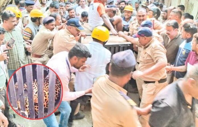 नागाळा पार्क ही उच्चभ्रू वसाहत असून, हॉटेल, शाळा, क्लास, महाविद्यालय आणि शासकीय कार्यालयामुळे हा परिसर नेहमीच गजबजलेला असतो. या भागात आज सकाळी साडेअकराच्या सुमारास आमदार सतेज पाटील यांच्या अजिंक्यतारा कार्यालयाशेजारी रस्त्याला लागून असलेल्या एका बंगल्यातून बिबटय़ाने हॉटेल वुडलॅण्डच्या गार्डनमध्ये उडी घेतली. बागेत बाकडय़ावर बसलेल्या एका जोडप्याच्या मागून येत बिबटय़ाने बागकाम करत असलेल्या तुकाराम खोंदल या कर्मचाऱ्यावर हल्ला केला. हॉटेलमधून बिबटय़ाने पलीकडे बीएसएनल कार्यालयात उडी घेतली. यानंतर महावितरण कार्यालयातील एका चेंबरमध्ये लपून बसला. तब्बल तीन तासांच्या अथक प्रयत्नानंतर चेंबरच्या एका उघडय़ा झाकणाची बाजू फळीने बंद करून दुसऱ्या बाजूच्या उघडय़ा झाकणातून बाहेर येताच जाळी फेकून बिबटय़ाला जेरबंद करण्यात आले.इंजेक्शन दिल्यानंतर बिबटय़ा बेशुद्ध झाल्याची खात्री झाल्यानंतर सर्वांनी सुटकेचा निःश्वास सोडला. यानंतर बिबटय़ाला नैसर्गिक अधिवासात सोडण्यात येणार असल्याचे वन विभागाच्या अधिकाऱ्यांनी सांगितले.