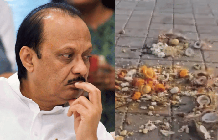 उपमुख्यमंत्री अजित पवार यांच्या बारामतीतील ‘सहयोग’ निवासस्थानासमोर आज सकाळी एका अघोरी पूजेचा आणि भानामतीचा प्रकार आढळून आला. सोसायटीच्या मुख्य गेटजवळ जमिनीवर लिंबू, मिरची, काळे कापड, काही पूजेचे साहित्य आणि उतारा आढळला. हा प्रकार सकाळी सहयोग सोसायटीतील रहिवाशांना दिसला. त्यानंतर परिसरात एकच खळबळ उडाली.