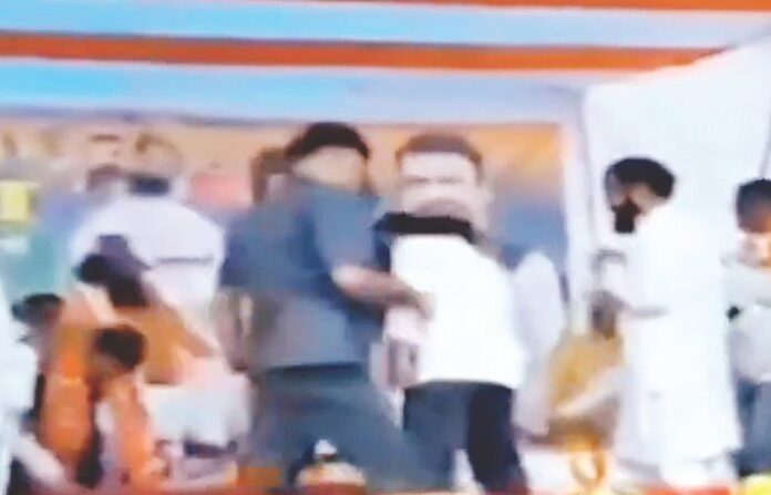 निवडणुकीच्या प्रचारासाठी बिहारमध्ये गेलेले मुख्यमंत्री देवेंद्र फडणवीस हे सभेच्या व्यासपीठावर पडले. खुर्चीवर बसत असताना त्यांची खुर्ची तुटली आणि बसता बसता ते खाली पडले. परबत्ता येथे चिराग पासवान यांच्यासह सभेसाठी ते गेले होते. तिथे हा प्रकार घडला. सोशल मीडियात याचे मीम्स व्हायरल होत आहेत.