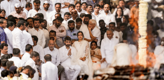 राज्याचे उपमुख्यमंत्री अजित पवार यांचे बुधवारी विमान अपघातात निधन झाले. गुरुवारी 29 जानेवारी रोजी त्यांच्यावर बारामती येथील विद्याप्रतिष्ठान मैदानावर शासकीय इतमामात अंत्यसंस्कार करण्यात आले. यावेळी महाराष्ट्रातील लाखोच्या संख्येने कार्यकर्ते उपस्थित होते.