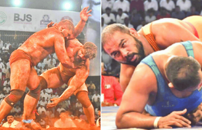 माती विभागातील उपांत्य फेरीत सोलापूर शहराचा ‘चपळ चित्ता’ रविराज चव्हाण आणि सोलापूरचा ‘बाहुबली’ महेंद्र गायकवाड यांच्यातील सामना विशेष गाजला. महेंद्रने सुरुवातीलाच भारंदाज डावावर २ गुण घेत खाते उघडले. त्यानंतर पकडीवर आणखी २ गुण मिळवत त्याने वर्चस्व प्रस्थापित केले. भारंदाज आणि पकड या प्रभावी डावांच्या जोरावर महेंद्र गायकवाडने १०-० असा एकतर्फी विजय मिळवत अंतिम फेरीत धडक मारली. दुसऱ्या उपांत्य सामन्यात हिंगोलीचा सिकंदर शेख आणि अहिल्यानगरचा सुदर्शन कोतकर यांच्यात जबरदस्त चुरस पाहायला मिळाली. सुदर्शनने सुरुवातीलाच ताबा मिळवत ३ गुणांची आघाडी घेतली आणि पहिल्या फेरीत वर्चस्व राखले. मात्र, पुढे गुण न घेतल्याने सिकंदरला १ गुण बहाल करण्यात आला. त्यानंतर सिकंदरने आक्रमक खेळ करत पकडीवर २ गुण मिळवले आणि सामना ३-३ असा बरोबरीत आणला. निर्णायक क्षणी सिकंदरने स्टेप आऊटचा १ मौल्यवान गुण घेत ४-३ असा थरारक विजय नोंदवला आणि अंतिम फेरीतील स्थान पक्के केले.