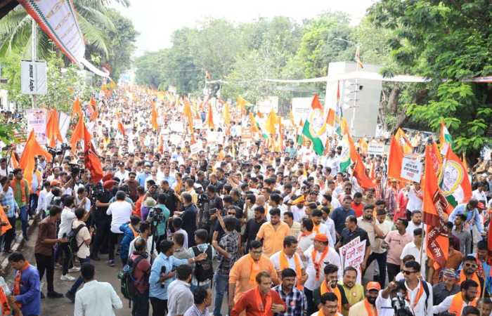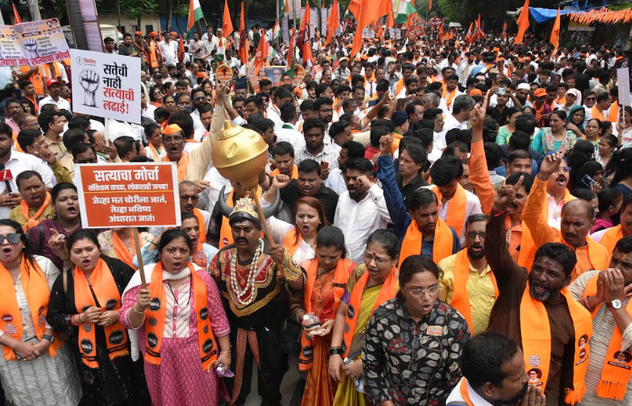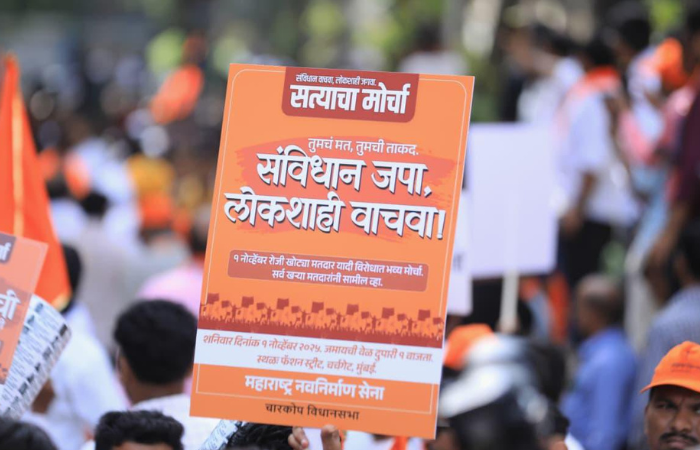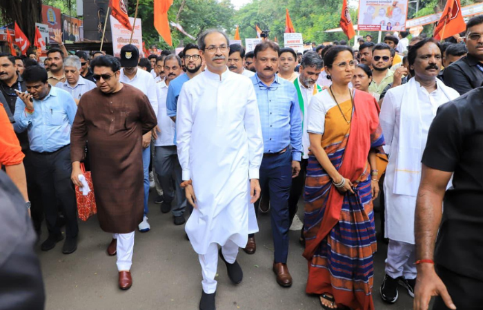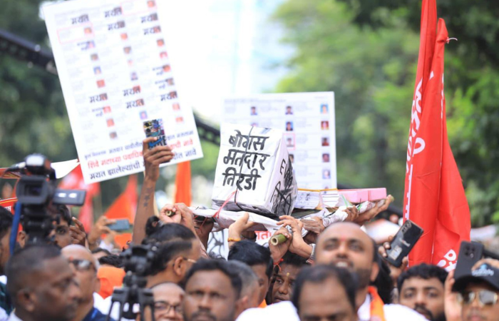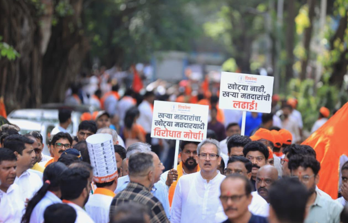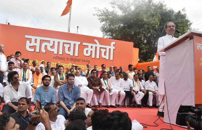 आज मतचोरी आणि मतदार याद्यांमधील घोळाबद्दल निवडणूक आयोगाचा निषेध नोंदवून लोकशाहीचा आणि खऱ्या मतदारांचा आवाज बुलंद करण्यासाठी आज सर्वपक्षीय महामोर्चा मुंबईत निघाला. यावेळी मोर्चामध्ये शिवसेना (उद्धव बाळासाहेब ठाकरे) पक्षप्रमुख उद्धव ठाकरे, मनसे अध्यक्ष राज ठाकरे, राष्ट्रवादी काँग्रेसचे अध्यक्ष शरद पवार, शिवसेना नेते, युवासेनाप्रमुख, आमदार आदित्य ठाकरे, खासदार सुप्रिया सुळे, राष्ट्रवादीचे प्रदेशाध्यक्ष जयंत पाटील, शेकापचे जयंतभाई पाटील, काँग्रेसचे विजय वडेट्टीवार, बाळासाहेब थोरात, शिवसेना खासदार अरविंद सावंत, खासदार संजय दिना पाटील, खासदार अनिल देसाई, माजी खासदार विनायक राऊत, आमदार सुनिल प्रभू, आमदार सचिन अहीर, माजी खासदार चंद्रकांत खैरे, सुषमा अंधारे, सतेज पाटील, जितेंद्र आव्हाड, वरुण सरदेसाई, बाळा नांदगावकर, अनिल देशमुख, सुनिल लंके, भाई जगताप, कृष्णा रेड्डी आणि लाखोंचा जनसमुदाय सहभागी झाला.