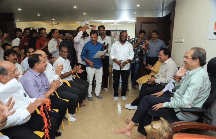 नवी मुंबईत मिंध्यांना धक्का बसला आहे. सहसंपर्कप्रमुख शिरीष काशिनाथ पाटील, उपविभागप्रमुख मयूर ठाकूर आणि संदिप साळवे यांनी त्यांच्या सहकाऱ्यांसह शिवसेनेत (उद्धव बाळासाहेब ठाकरे) प्रवेश केला. शिवसेना (उद्धव बाळासाहेब ठाकरे) पक्षप्रमुख उद्धव ठाकरे यांनी सर्वांचे पक्षात स्वागत केले. यावेळी शिवसेना नेते सुभाष देसाई, शिवसेना नेते राजन विचारे, विठ्ठल मोरे, जिल्हाप्रमुख प्रकाश पाटील आणि इतर पदाधिकारी व शिवसैनिक उपस्थित होते.