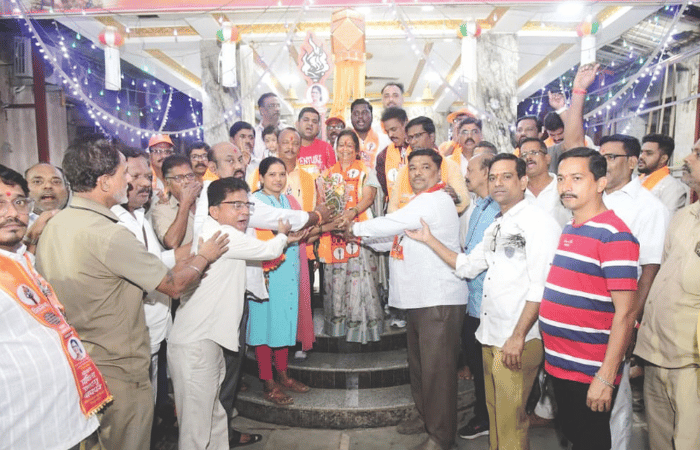 प्रभाग क्र. 199 च्या शिवसेना, महाराष्ट्र नवनिर्माण सेना आणि राष्ट्रवादीच्या उमेदवार किशोरी पेडणेकर यांच्या प्रचार रॅलीचे यशश्री, मंगलमूर्ती सोसायटीतील रहिवाशांनी स्वागत केले.