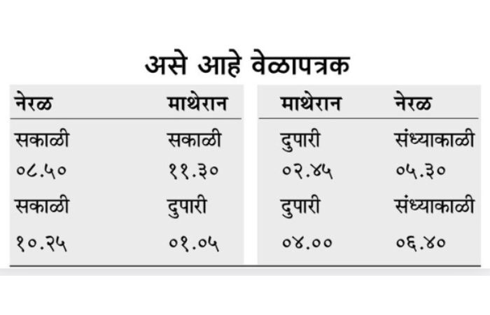 नेरळ ते माथेरानदरम्यान जुम्मापट्टी, वॉटर पाइप, अमन लॉज व माथेरान अशी चार स्थानके आहेत. तीन दिवसांपूर्वीच माथेरानच्या राणीची चाचणी घेण्यात आली होती. त्यानंतर सुरक्षा विभागाने हिरवा कंदील दर्शवला असून आता प्रत्यक्षात पर्यटकांना प्रवास करायला मिळणार आहे. या गाडीला एकूण सहा डबे आहेत. त्यात फर्स्ट क्लासचा एक डबा असून त्यासाठी ३४० रुपये मोजावे लागतील. सेकंड क्लासचे तिकीट फक्त ९५ रुपये एवढे आहे. विशेष विस्टाडोम हे प्रमुख आकर्षण असणार आहे. काचेच्या खिडक्या, काचेची छत यामुळे माथेरानचा निसर्ग डोळ्यांत साठवता येईल. मात्र त्यासाठी ७५० रुपये तिकीट ठेवले आहे. त्याशिवाय एक डिलक्स डबादेखील असून त्याचे तिकीट १ हजार ७०० रुपये एवढे आहे.