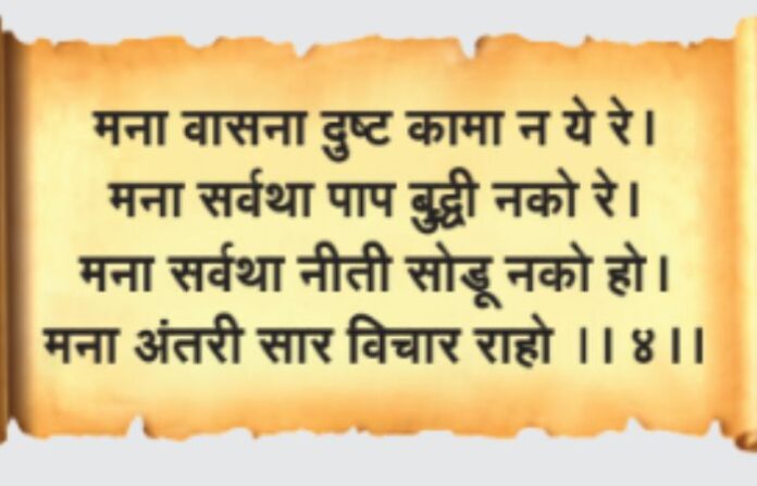 आपण सर्वसामान्य माणसं जगण्याची एक चाकोरी स्वीकारतो. पण त्यातही एकमेकांबद्दल अपेक्षा असतात. मानापमान, हेवेदावे असतात. अगदी रक्ताच्या नातेसंबंधात दुरावा निर्माण होतो. अशावेळी हे तंटे दुसऱ्याला सांगण्यापेक्षा आपल्याशी म्हणजे आपल्याच मनाशी संवाद साधावा. कोण चुकतंय यापेक्षा काय चुकतंय ह्याचा शोध स्वतशीच घ्यावा. आपल्या मनाला आपणच समजावून सांगायचे की , हे मना ! दुष्ट वासना- वाईट ईच्छा मनाला स्पर्शुही देऊ नकोत. कुणाचे बरेवाईट व्हावे असा विचार ही मनात येऊ नये. असे आपल्याच मनाला बजावयाचे . मनाला समजवायचे की पाप बुद्धीने तर कधीच वागू नकोसच पण नीती धर्माचे आचरणही तू सोडू नकोस !! धर्म ,न्याय ,सत्य ,प्रेम , त्याग यांची बांधिलकी मनातूनच मानली गेली पाहिजे. जीवनात जे खरोखर चांगलं श्रेष्ट आहे त्याचा विचार अंतर्यामी करणं आवश्यक आहे .