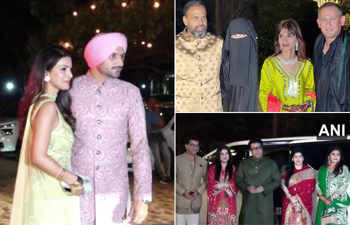दरम्यान, या शाही सोहळ्याला दिग्गजांनी हजेरी लावली. प्रसिद्ध चित्रपट निर्माते विधू विनोद चोप्रा, पत्नी अनुपमा चोप्रा आणि मुलगा अग्नी देव चोप्रा यांच्यासह उपस्थित होते. तसेच क्रिकेटपटू युवराज सिंह-हेचल, हरभजन सिंग-गीता बसरा, झहीर खान-सागरिका घाटगे, अजित आगरकर-फातिमा, इराफान पठाण-सफा बेग आणि युसूफ पठाण-आफ्रीन हे दांम्पत्य यावेळी उपस्थित होते. तसेच माजी क्रिकेटपटू आणि कोच रवी शास्त्री, मनसे अध्यक्ष राज ठाकरे हे सहकुटुंब या सोहळ्याला उपस्थित होते.