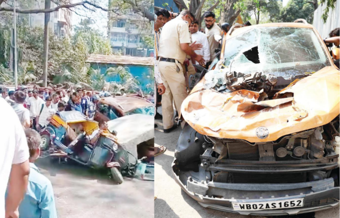 मुलुंड पश्चिम येथे शनिवारी दुपारी चालती रिक्षा आणि कारवर मेट्रोचा अवाढव्य खांब कोसळल्याने एकाचा मृत्यू झाल्याची घटना घडली. रामधन यादव असे मृताचे नाव आहे. या दुर्घटनेत अन्य तीन जण गंभीर जखमी झाले असून एकाची प्रकृती चिंताजनक आहे. एलबीएस मार्गावर ‘एमएमआरडीए’कडून मेट्रो-4 मार्गिकेचे काम सुरू असून निष्काळजीपणामुळे हा अपघात झाल्याचा आरोप केला जात आहे.