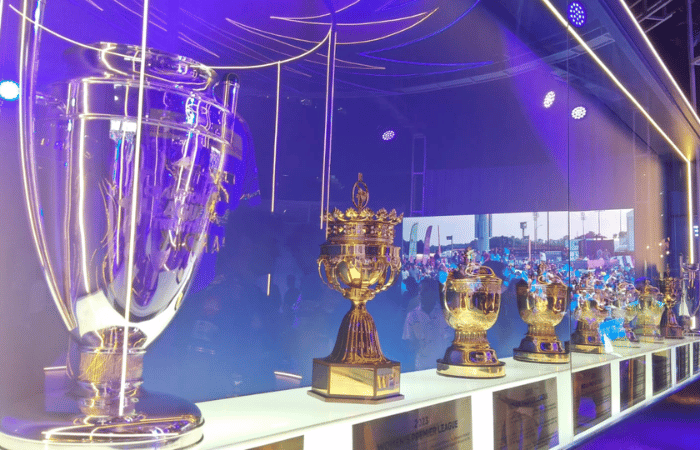 याठिकाणी मुंबई फ्रेंचायजी जगभरात ज्या लीगमध्ये खेळते तिथे जिंकलेल्या ट्रॉफी देखील ठेवण्यात आल्या होत्या. एवढेच नाही तर यंदाच्या हंगामात मुंबईकडून खेळणाऱ्या खेळाडूंची जर्सी तिथे ठेवण्यात आली होती. खेळाडूचे नाव, त्याची साईन आणि खाली तो खेळाडू मुंबईकडून कोणत्या हंगामात खेळला हे नमूद करण्यात आले होते.