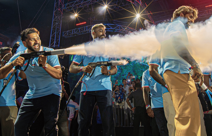 बांद्रा-कुर्ला कॉम्प्लेक्स येथे झालेल्या या कार्यक्रमात कर्णधार हार्दिक पंड्या, माजी कर्णधार रोहित शर्मा आणि टी-20 विश्वचषक विजेता कर्णधार सूर्यकुमार यादव उपस्थित होते. स्टेजवर स्मोक गनसह मजा करताना आणि फॅन्ससोबत फोटो घेताना हे खेळाडू दिसले. हा कार्यक्रम मुंबई इंडियन्सकडून पहिल्यांदाच आयोजित करण्यात आला होता.