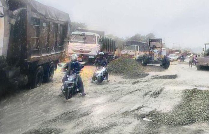 मीरा-भाईंदर शहरातील विविध रस्त्यांवर सध्या खड्यांचे मोठे साम्राज्य निर्माण झाले आहे. हे रस्ते दुरुस्त करण्यासाठी पालिका प्रशासनाकडून पावसाळ्याचे कारण पुढे केले जात आहे. पावसाळ्यात रस्त्यावर डांबर टाकले जात नाही. कारण पाऊस पडल्यामुळे त्याचा चिवटपणा निघून जातो आणि ते खडीतून वेगळे होते. मात्र आज चक्क भरपावसात दोन्ही प्राधिकरणांनी मुख्यमंत्री ज्या मार्गाने शहरात आले त्या रस्त्यावर डांबरीकरण केले. युद्धपातळीवर सुरू असलेले हे काम पाहून नागरिकांनी अक्षरशः तोंडात बोटे घातली. पालिका आणि एमएमआरडीएच्या कार्यपद्धतीवर सर्वच स्तरातून आता टीकेची झोड उठली आहे.