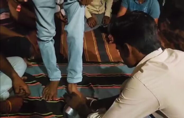 तरुणाने सोशल मीडियावर एक पोस्ट शेअर केली होती. मात्र तणाव वाढल्यानंतर त्याने पंधरा मिनीटात पोस्ट डिलीट केली आणि सार्वजनिकरित्या माफिही मागितली. मात्र पंचायतने हे प्रकरण संपविले नाही. गावकऱ्यांनी पंचायत बोलावून मिम शेअर करणाऱ्या तरुणाला दुसऱ्या तरुणाचे पाय धुवून ते घाणेरडे पाणी प्यायला भाग पाडले. त्याचबरोबर सर्व समजाची माफी मागायला सांगितली. मात्र आता या घटनेचा व्हिडीओ व्हायरल झाला असून तणावाची परिस्थिती निर्माण झाली आहे. काँग्रेसने सोशल मीडियावर या प्रकरणावर टीका केली आहे.