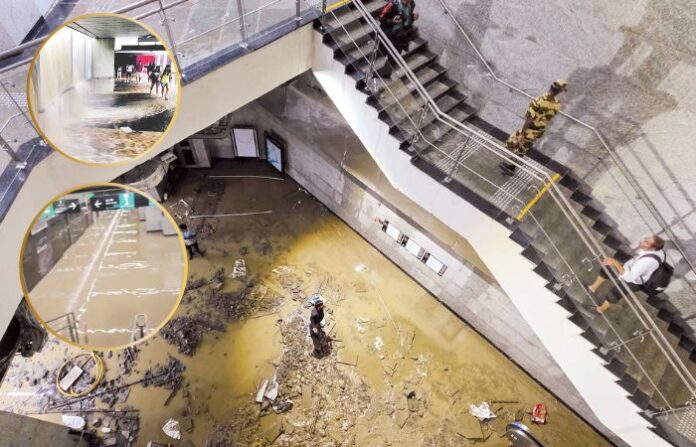 मेट्रो स्थानकात धबधब्यासारखे पाणी पडत होते. स्वयंचलित जिने बंद करण्यात आले. बाहेरील कचरा आणि घाण मोठय़ा प्रमाणात स्थानकात शिरली आणि स्थानकात चिखलाचे साम्राज्य पसरले.