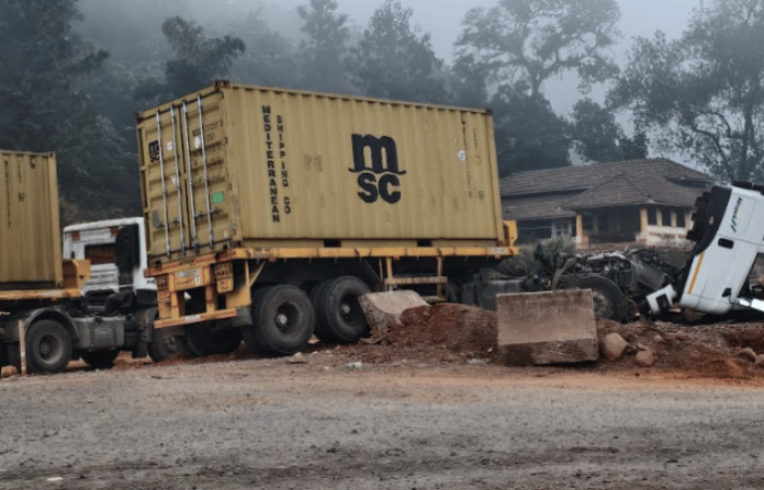 सध्या मुंबई–गोवा राष्ट्रीय महामार्गाचे चौपदरीकरण सुरू आहे. मात्र या कामादरम्यान अनेक ठिकाणी दिशादर्शक फलक तसेच पूर्वसूचना फलक नसल्याचे चित्र आहे. मुंबईहून रत्नागिरीकडे जाणारा कंटेनर जाखमाता परिसरातील मारुती मंदिराजवळ महामार्गावरून पुढे जात असताना, चढाव व पुलाच्या सुरू असलेल्या कामामुळे चालकाचा अंदाज चुकला. परिणामी कंटेनरचा पुढील भाग सिमेंट अडथळ्यांवर आपटून तुटून खाली पडला आणि वाहन पुलाच्या कडेला अडकून राहिले.
