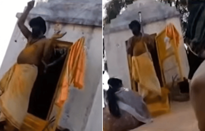 अंगात आल्याचा बनाव करून तलवारीच्या धाकावर गोरगरीब जनतेची फसवणूक करणाऱ्या कथित ‘तलवार बाबा’ उर्फ ज्ञानेश्वर करडे याला पोलिसांनी बेड्या ठोकल्या आहेत. मात्र, या कारवाई दरम्यान बाबाच्या समर्थकांनी बिलोली पोलीस ठाण्यातच धुडगूस घालत पोलीस उपनिरीक्षकाची कॉलर पकडून धक्काबुक्की केल्याची धक्कादायक घटना घडली आहे.