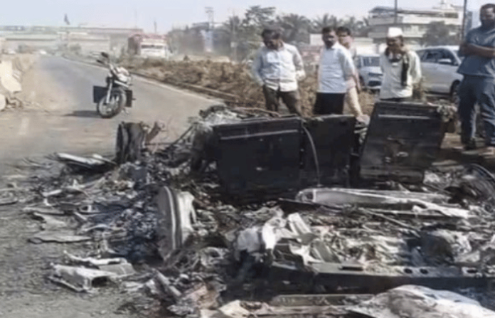 नाशिक-मुंबई महामार्गावरील गोंदेफाटा परिसरात शुक्रवारी मध्यरात्री एक थरारक घटना घडली. राजस्थानमधील जालोर-सिरोही मतदारसंघाचे भाजप खासदार लुम्बा राम चौधरी यांच्या 4 कोटीच्या आलिशान रेंज रोव्हर कारने अचानक पेट घेतला. या भीषण आगीत कार जळून खाक झाली. चालकाच्या प्रसंगावधानाने सर्व प्रवासी सुखरूप बाहेर पडल्याने अनर्थ टळला.
