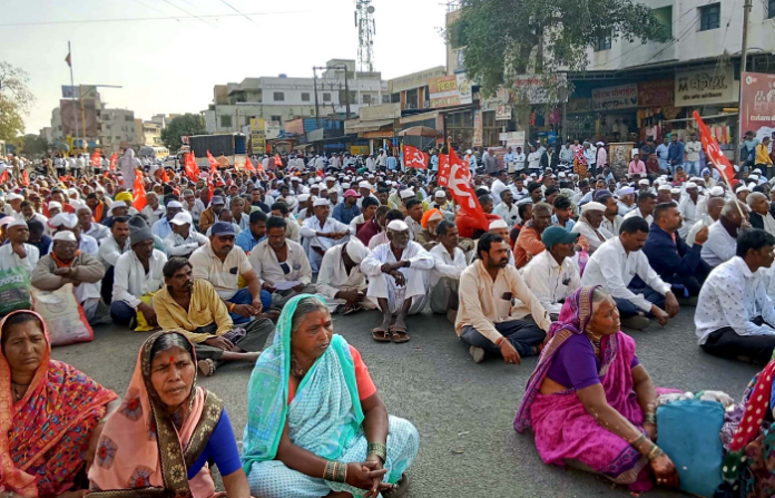 पश्चिमवाहिनी नद्यांच्या उपनद्यांवर सिमेंटचे बंधारे बांधून शेती-उद्योगधंद्यांना पाणी उपलब्ध करून द्यावे, वनाधिकार कायदा, 2006 अंतर्गत आदिवासींच्या ताब्यात असलेली दहा एकर हक्काची जमीन तत्काळ लाभधारकांना द्यावी, स्वतंत्र सातबारा तयार करून पती-पत्नीचे नाव कब्जेदार म्हणून नोंदवावे, वनपट्टाधारकांना मिळालेल्या जमिनीत विहीर, जमीन सपाटीकरण, फळबाग लागवड, सोलर यांसारख्या केंद्र व राज्य सरकारच्या सर्व योजनांचा लाभ मिळावा, सर्व पिकांना हमीभाव द्यावा, भात पिकासाठी आदिवासी विकास विभाग जसा 40 हजारांचा बोनस देतो त्याप्रमाणे वनपट्टाधारकांनाही लाभ मिळावा, पेसा क्षेत्रातील सर्व खात्यांमधील नोकरभरती, जिल्हा परिषद शाळांमधील शिक्षक भरती त्वरित पूर्ण करावी, शासकीय आश्रमशाळा व वसतिगृहांमधील कर्मचारी भरती करावी, शेतकऱ्यांना चोवीस तास वीजपुरवठा करण्यात यावा यांसह विविध मागण्यांसाठी शनिवारी दुपारी पावणेचारच्या सुमारास किसान सभेच्या वतीने दिंडोरी चौफुलीवर ‘रास्ता रोको’ करण्यात आला. त्यापूर्वी कृषी उत्पन्न बाजार समितीच्या आवारातून मोर्चेकऱ्यांनी रॅली काढली.