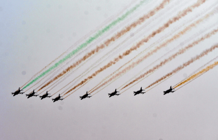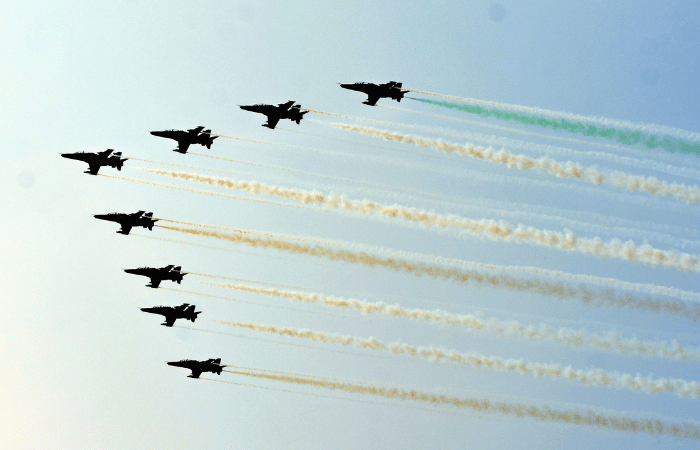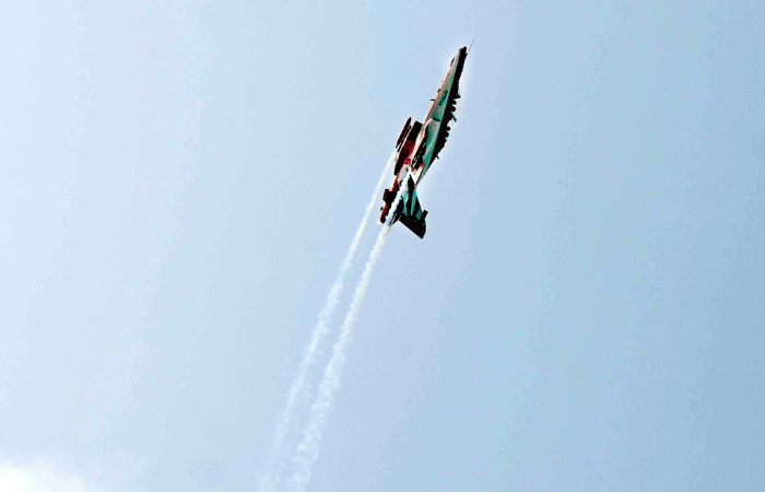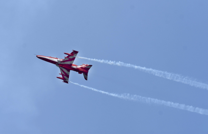 आशिया खंडातील सर्वोत्तम हिंदुस्थानी वायू दलाच्या सूर्यकिरण टीमने नाशिक येथील गंगापूर धरण परिसरात गुरुवारी नऊ लढाऊ विमानांच्या शानदार हवाई कसरती करून उपस्थितांना थक्क केले. वायूवेगाने झेपावून तिरंगा, मिग २९, बाण, त्रिशूळ, डीएनएसह विविध प्रतिकृती साकारून आकाशाला त्यांनी जणू नक्षीदार साज चढवला. या सुमारे पंचवीस मिनिटांच्या चित्तथरारक कसरतींमधून वैमानिकांनी शौर्याचे दर्शन घडवून हजारो नाशिककरांमध्ये देशभक्तिचा जागर केला.