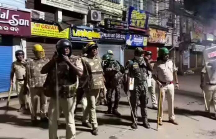 ओडिशाच्या कटक शहरामध्ये दुर्गा पूजेच्या विसर्जनानंतर झालेल्या हिंसाचारानंतर शहरात जमावबंदी लागू करण्यात आली आहे. ही जमावबंदी 6 ऑक्टोबर रात्री 10 वाजेपासून 7 ऑक्टोबर सकाळी 10 वाजेपर्यंत लागू असणार आहे, अशी माहिती अतिरिक्त पोलीस आयुक्त नरसिंह भोला यांनी दिली. शहरात जमावबंदी असली तरी शहरात शाळा, कॉलेज, आवश्यक सेवा, रुग्णालय, किराणा दुकाने आणि पेट्रोल पंप खुले राहणार आहेत. या सर्वांना जमावबंदीतून सूट देण्यात आली आहे. कोणतीही अनुचित घटना घडू नये, यासाठी शहरात 60 पोलीस तुकड्या तैनात करण्यात आल्या आहेत.