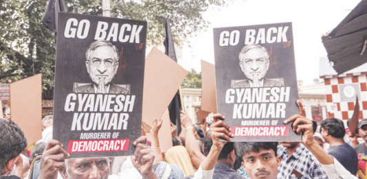 पश्चिम बंगालमध्ये लवकरच विधानसभा निवडणूक जाहीर होणार आहे. निवडणुकीच्या तयारीचा आढावा घेण्यासाठी कोलकाता येथे पोहोचलेले मुख्य निवडणूक आयुक्त ज्ञानेश कुमार यांना विरोधाचा सामना करावा लागला. देशाच्या स्वातंत्र्य लढ्यात एकेकाळी ‘गो बॅक सायमन’च्या नाऱ्यांनी देश दुमदुमला होता. आता ‘गो बॅक ज्ञानेश कुमार’ अशी नारेबाजी कोलकात्यामध्ये करण्यात आली. तसे पोस्टर देखील झळकावण्यात आले. ज्ञानेश कुमार यांनी बंगालच्या … Continue reading ‘गो बॅक ज्ञानेश कुमार’, बंगालमध्ये मुख्य निवडणूक आयुक्तांविरोधात जोरदार नारेबाजी