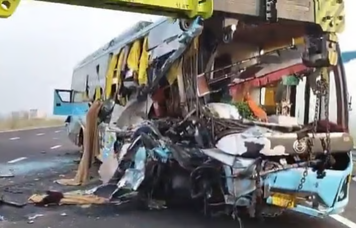 मुंबई-दिल्ली एक्सप्रेसवेवर 42 प्रवाशांना घेऊन जाणाऱ्या स्लीपर बसला भीषण आग लागल्याची घटना घडली. या आगीत दोन प्रवाशांचा होरपळून मृत्यू झाला तर 12 जण जखमी झाले आहेत. मृतांचा आकडा वाढण्याची शक्यता आहे. कोटा जिल्ह्यातील अरनखेडा गावाजवळ पहाटे 4.30 वाजण्याच्या सुमारास हा अपघात घडला.